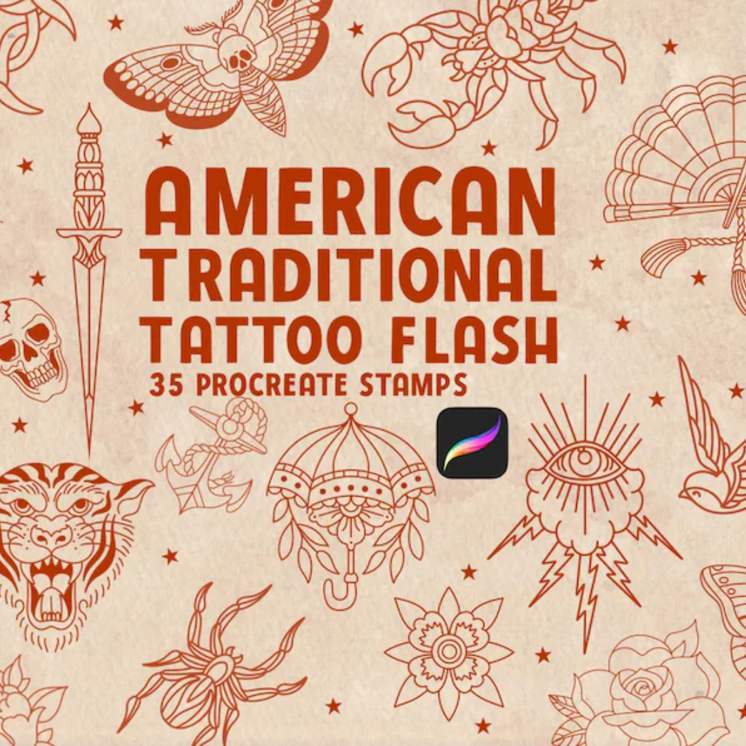 American Traditional Tattoo Flash Procreate Stamps: Old School Designs (Digital Download)